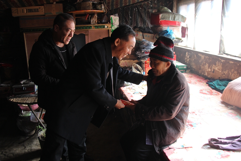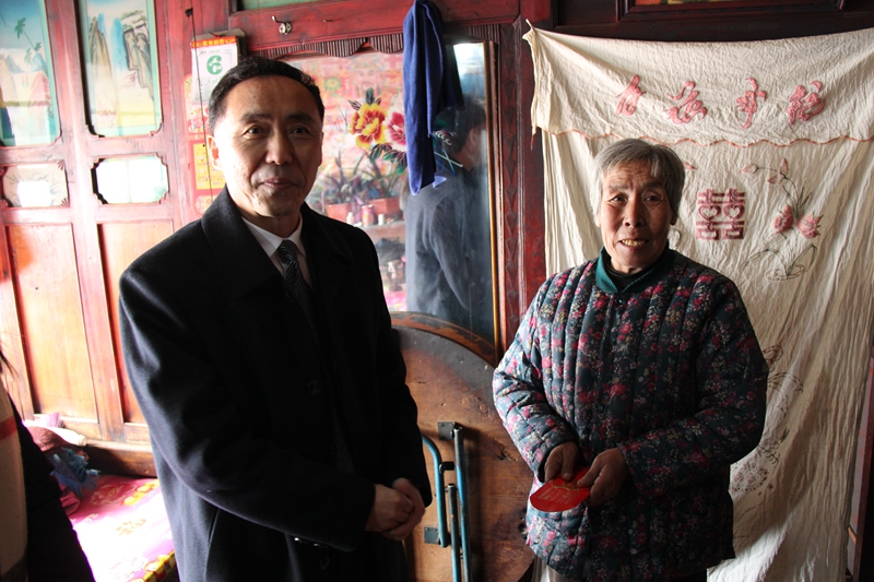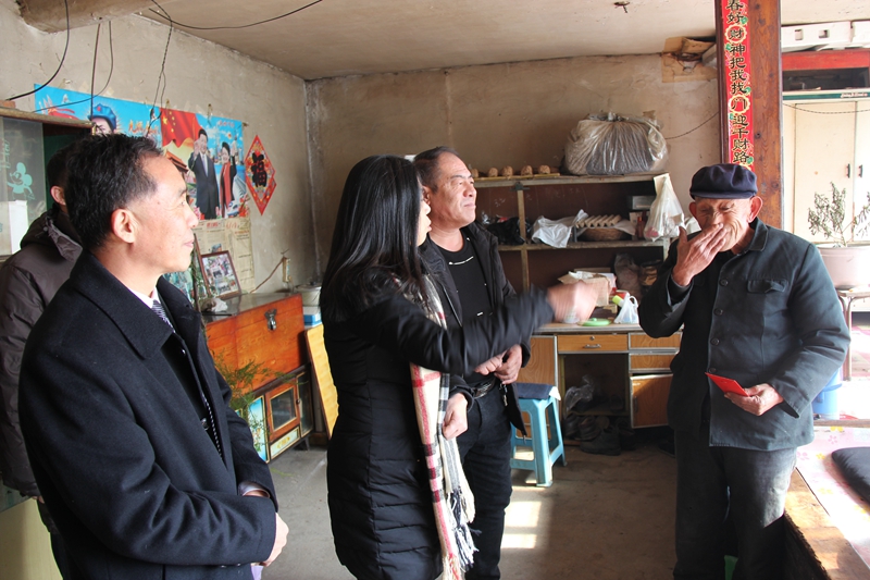 在閻書記的帶領(lǐng)下,慰問團(tuán)驅(qū)車走進(jìn)虎皮峪村的深山里,開始逐家走訪困難戶。首先來到貧困戶金大爺?shù)募?,金大爺老伴患腦血栓臥床十余年,金大爺需要常年護(hù)理老伴,家庭沒有經(jīng)濟(jì)收入,生活十分困難。金大爺接到慰問團(tuán)送來的1000元現(xiàn)金,當(dāng)場流下了熱淚,感謝中天集團(tuán)能夠惦記他們這樣的貧困戶,1000元現(xiàn)金可以購買全部的年貨,這個春節(jié)一定會幸福開心。