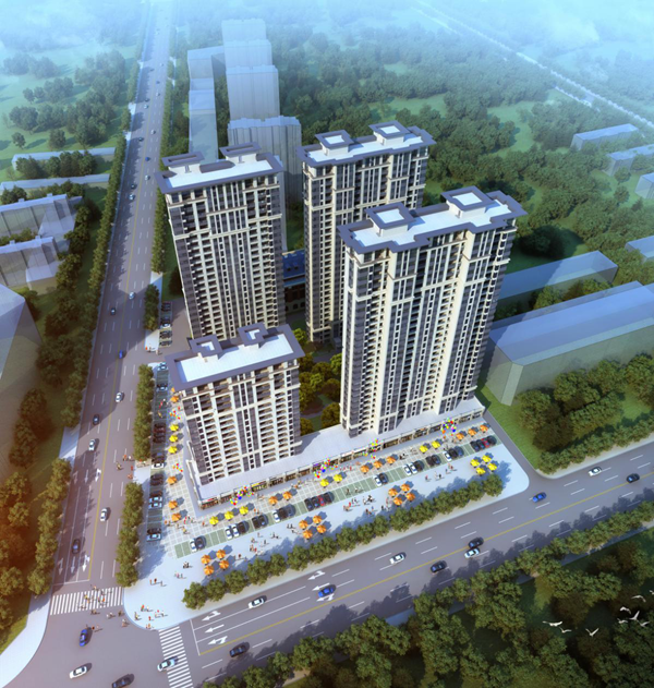 該地塊用地性質(zhì)為居住用地、商業(yè)服務(wù)業(yè)設(shè)施用地,用地面積:42490.9平方米,總建筑面積:91297.45平方米,其中住宅建筑面積為69489.92平方米,商業(yè)建筑面積為6810.74平方米。南北兩排住宅建筑與沿街商業(yè)圍合形成中心景觀區(qū)域,既滿足用戶需要又提升商業(yè)價值。另外還設(shè)計了物業(yè)配套建筑和文化活動中心,物業(yè)建筑面積為300平方米,不僅為用戶提供了更加方便快捷的服務(wù),還為用戶配備了舒適的休閑娛樂活動區(qū);小區(qū)道路等級分明,功能明確,沿街設(shè)置三個入口以及一個地下車庫入口,小區(qū)道路寬6米,機(jī)動車位共665個,其中地上停車位293個,地下停車位372個,為業(yè)主提供了足夠的停車空間;小區(qū)綠化率達(dá)到30%,讓業(yè)主置身園林體會“曲徑通幽處”、“小橋流水人家”的意境。