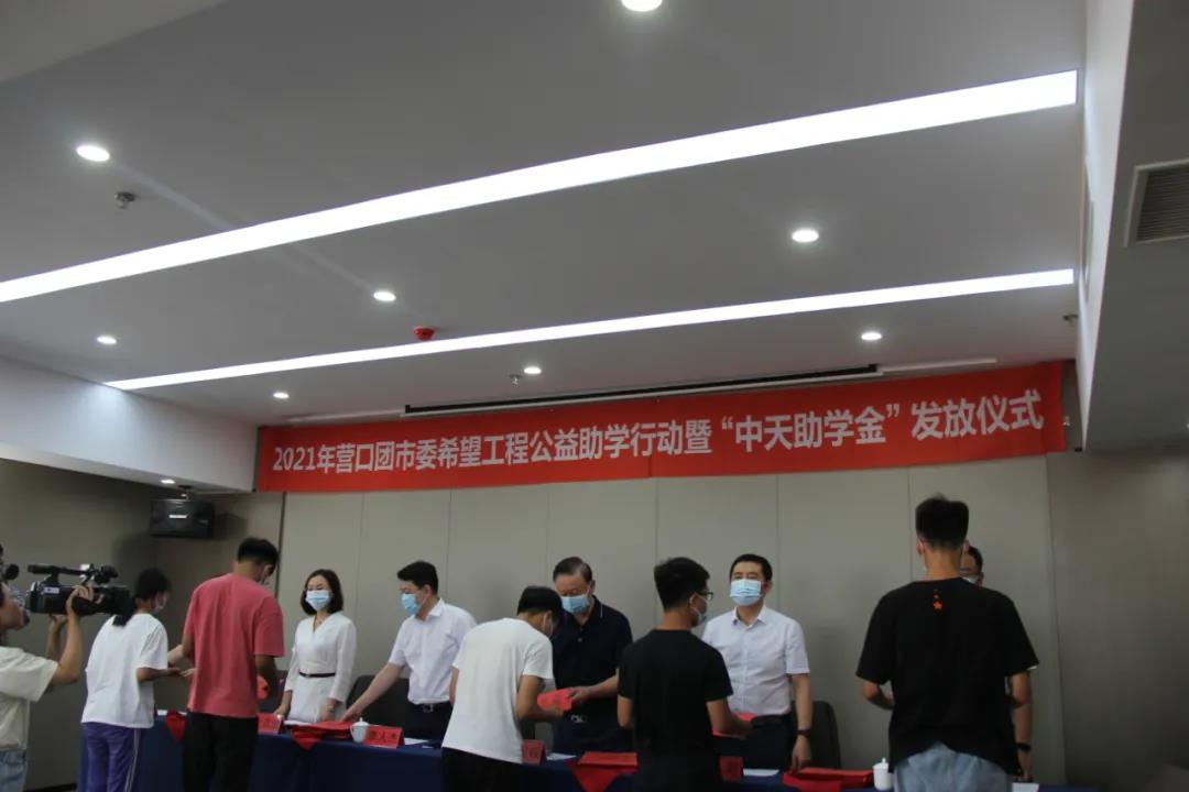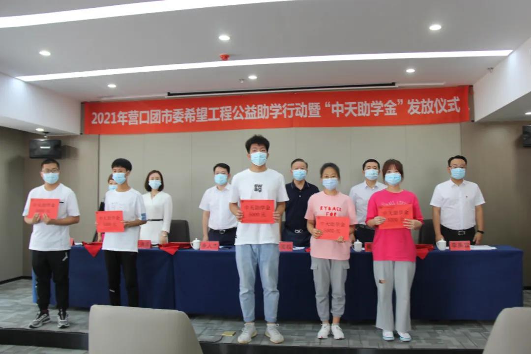 8月13日下午,2021年?duì)I口市希望工程公益助學(xué)活動暨“中天助學(xué)金”發(fā)放儀式在中天集團(tuán)總部會議室舉行。營口團(tuán)市委書記李人杰、副書記李禹霖,營口市慈善總會會長黃渤,市委教育工作委員會專職委員班龍,中天集團(tuán)董事長于寶權(quán)、總裁于洪波、行政人力資源總監(jiān)許文明以及獲得資助的35名學(xué)生,出席了本次發(fā)放儀式。