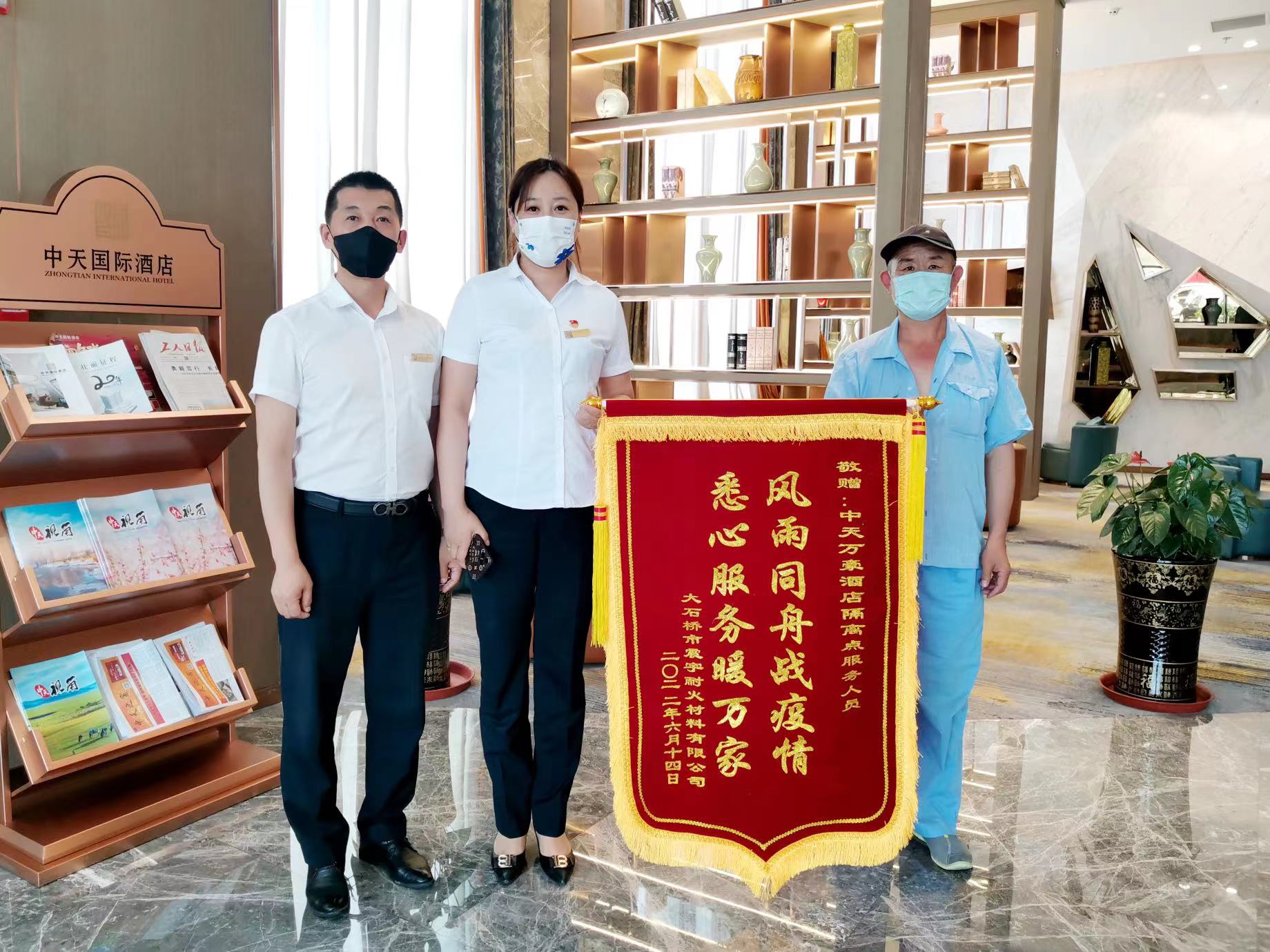 酒店公司作為疫情防控的最前線,肩負(fù)起隔離點(diǎn)的重任。大家義無(wú)反顧穿起隔離服,舍小家顧大家,堅(jiān)守崗位,越是艱險(xiǎn)越向前,不辭辛苦,不分晝夜,逆風(fēng)而行。24小時(shí)值守,配送三餐,整理消殺,熱情服務(wù),與高風(fēng)險(xiǎn)“面對(duì)面”,與隔離人員“心貼心”。一名隔離人員在感謝信中說(shuō):雖然我看不清你們的臉,但我感受到了真正的“暖”。封控不封愛,隔離不隔心,中天酒店人勇敢地“逆行”站到防疫的前線,圓滿完成了隔離任務(wù),也收獲了社會(huì)的認(rèn)可與點(diǎn)贊。