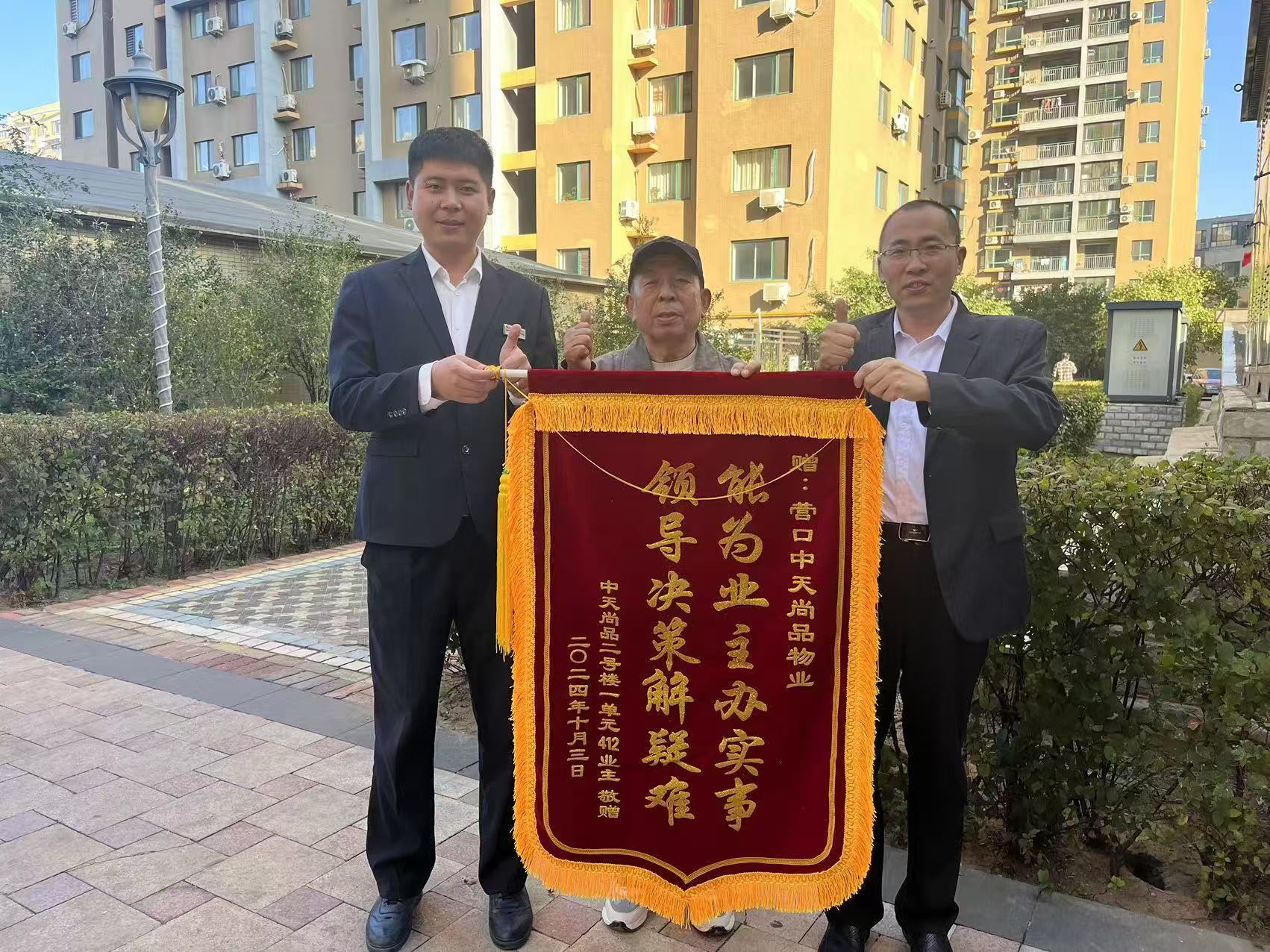好物業(yè),不僅盡力,而且盡心,對(duì)業(yè)主盡心、對(duì)工作盡心,業(yè)主才能更貼心、放心、省心、傾心。近日,中天尚品物業(yè)迎來(lái)了2號(hào)樓1單元404的業(yè)主,業(yè)主手握一面印有“能為業(yè)主辦實(shí)事,領(lǐng)導(dǎo)決策解疑難”鎏金大字錦旗,贈(zèng)送中天尚品小區(qū)物業(yè)部,一聲感謝暖人心懷,一面錦旗彰顯擔(dān)當(dāng)。中天物業(yè)人用真情和行動(dòng),為呈現(xiàn)有溫度的鄰里生活全力以赴。