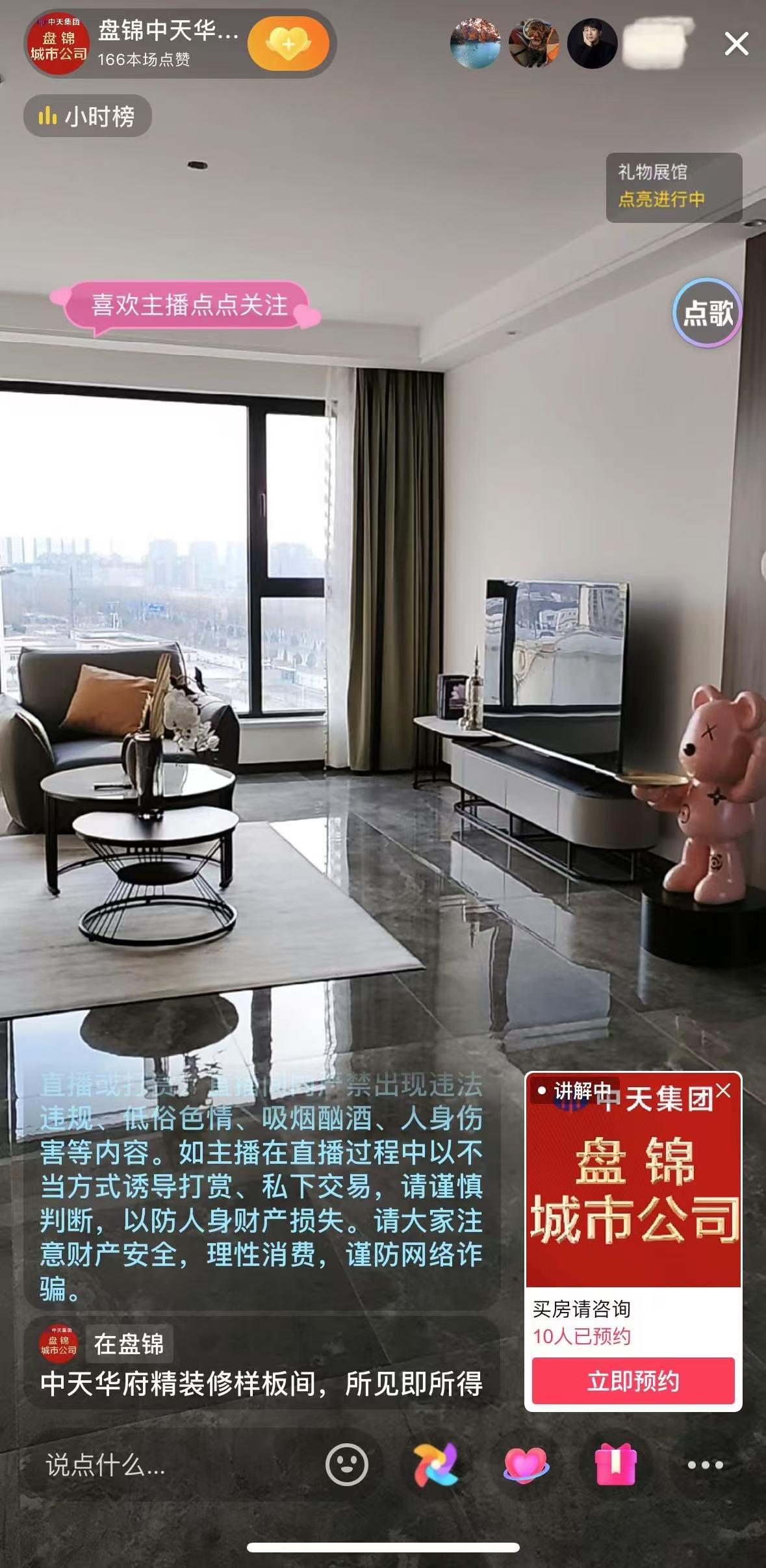 2024年12月,中天集團盤錦城市公司策劃營銷團隊以線上直播“云賣房”的形式開辟了新的營銷渠道,通過培育“王牌主播”,利用線上新媒體的高傳播、高擴散的優(yōu)勢,宣傳公司在售項目,吸引更多潛在客群關注,有效轉化形成線下的銷售業(yè)績。