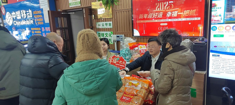 活動現(xiàn)場,策劃推廣部的同事們精心布置了琳瑯滿目的獎(jiǎng)品,雪餅、仙貝、糖果散發(fā)著誘人的甜香,而芝麻丸、花生、瓜子、核桃等堅(jiān)果類食品則傳遞著健康與活力的信息。顧客們圍攏在活動區(qū),眼中閃爍著期待與興奮的光芒。參與者們躍躍欲試,尋找最佳時(shí)機(jī),將手伸進(jìn)裝滿獎(jiǎng)品的大筐中,抓取屬于自己的那份“幸?!?。