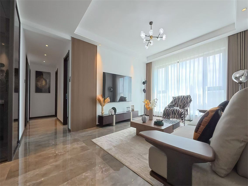 推開樣板間大門,映入眼簾的是約4.2米開間的朗闊客廳,與270°觀景陽臺無縫銜接,河景風光成為室內(nèi)最靈動的裝飾。清晨,第一縷陽光裹挾著河面的薄霧灑入,喚醒沉睡的生活靈感;傍晚,夕陽將粼粼波光揉碎成金色碎片,與家人倚坐觀景,感受時光緩緩流淌。開闊的空間布局不僅承載日常起居,更成為親朋歡聚的溫馨場域,窗外的河水仿佛是天然的背景音樂,為生活增添浪漫詩意。