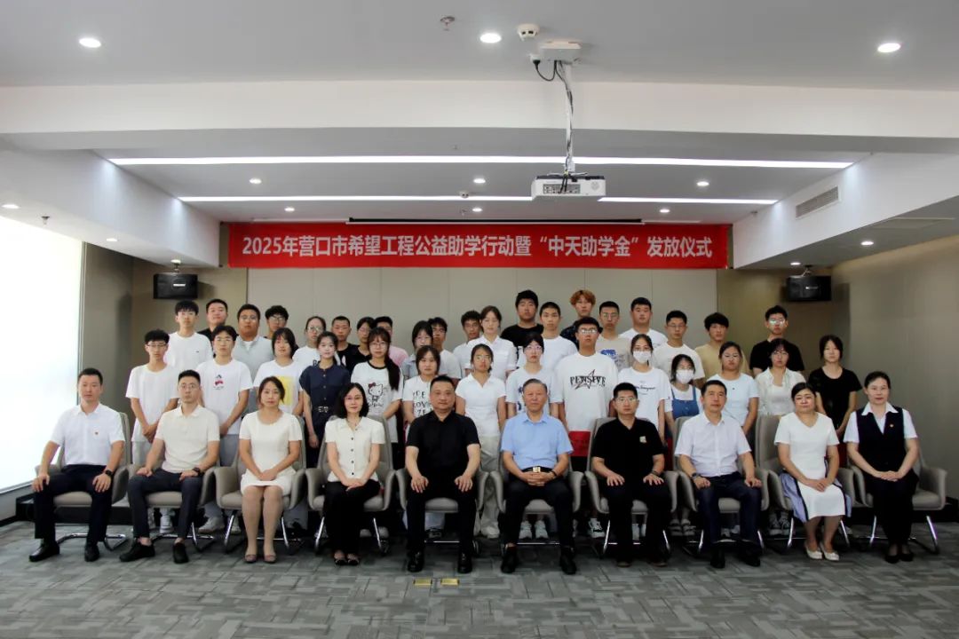 8月18日下午,2025年?duì)I口市希望工程公益助學(xué)行動(dòng)暨“中天助學(xué)金”發(fā)放儀式在中天集團(tuán)總部會(huì)議室舉行。營(yíng)口市團(tuán)市委書記劉慶男,中天企業(yè)集團(tuán)董事長(zhǎng)于寶權(quán)、總裁于洪波,營(yíng)口市團(tuán)市委副書記李瀚霖、曹午陽,營(yíng)口市教育局副局長(zhǎng)關(guān)雪嬌,營(yíng)口市慈善總會(huì)副會(huì)長(zhǎng)黃渤以及獲得資助的35名學(xué)生,出席了本次發(fā)放儀式。